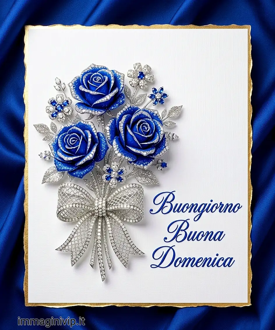 Questo splendido bouquet di rose color zaffiro e petali impreziositi da dettagli luminosi è un dolce promemoria del fatto che meriti una giornata di pura meraviglia.che la tua domenica sia preziosa, elegante e mozzafiato come questa creazione dai toni intensi e raffinati.Brilla intensamente e goditi ogni singolo momento di oggi!