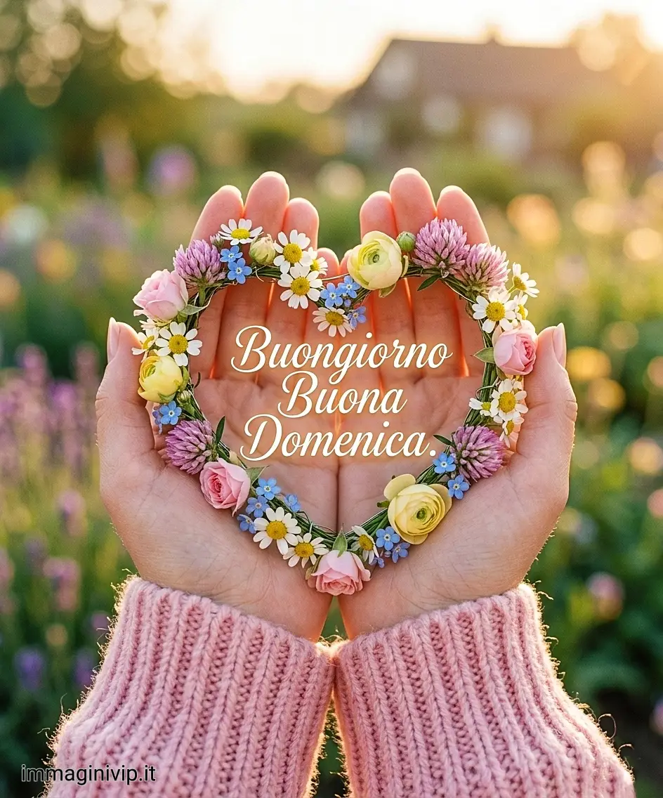 Questa immagine di morbide maniche rosa che accarezzano un cuore fiorito è proprio come dovrebbe essere una domenica.